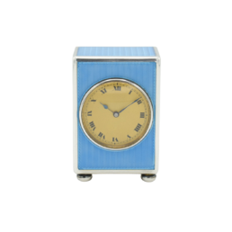 A fine silver and blue enamel guilloche enamel miniature carriage timepiece. Guilloche enamel on…