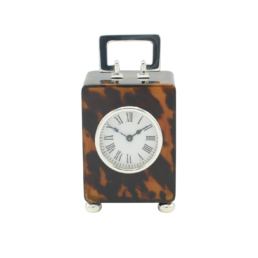 A fine miniature carriage clock with beautiful 'mock' tortoise shell case. The Deco inspired…