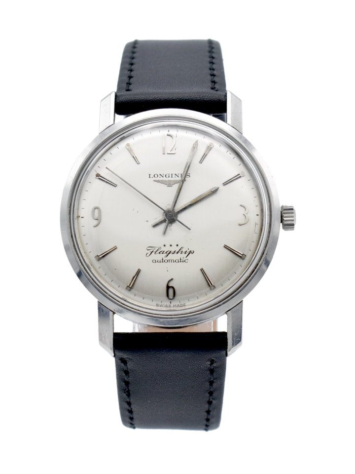 A superb, large Heuer Autavia GMT with date, ref-1163 circa 1970, Automatic. The Autavia was the first watch introduced under the leadership of Jack Heuer (the new CEO) in 1962, taking its name from ‘Automotive’ and ‘Aviation’. The watch is now fully overhauled and the untouched dial is still very dark, near black, the lume is good too. The movement is the Calibre 11, GMT, the watch will be supplied with the Beige Suede two stitch,the Red/Blue Nato strap shown and also a new Leather perforated sports strap. Serial Number 205434. This watch also comes with the original bezel (RARE) as seen in the picture.