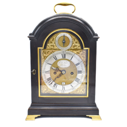 An unusual and unique 19th century mahogany fusee timepiece wall clock by Thurlow, Ryde. The face is unique in that it is polished mahogany with a studded minute track border and with gilt metal Roman numerals. The cast brass bezel is secured with a latch and fitted with thick beveled glass. Henry Thurlow is listed in the 1881 census as a watchmaker at 55 Union Street, Ryde, Isle of Wight. His father Edward Thurlow was also a watchmaker and jeweller at 54 and 55 Union Street. The high quality fusee movement is fully serviced and guaranteed for 24 months.